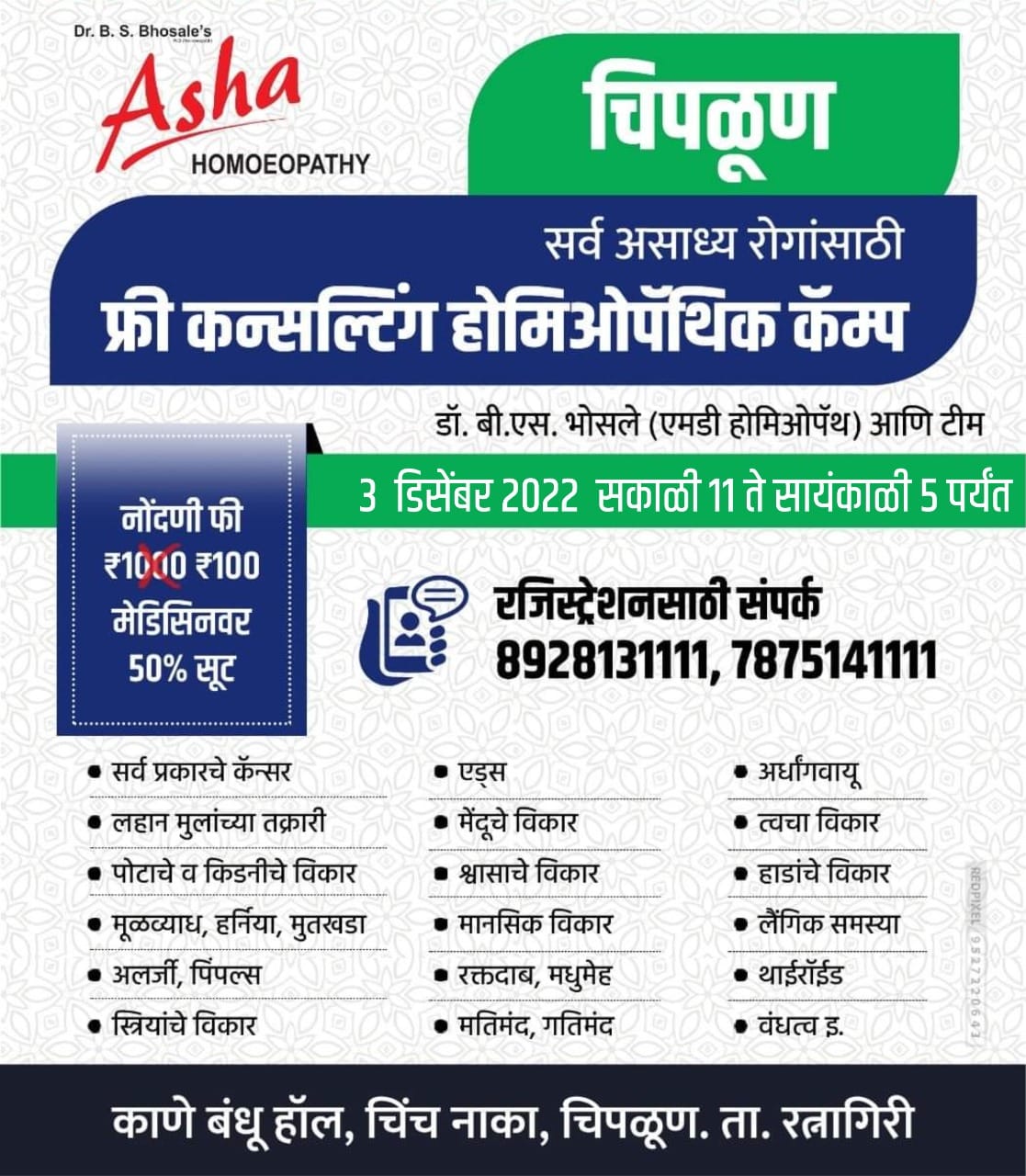 ‼️आशा होमिओपॅथी आयोजित फ्री कन्सल्टिंग होमिओपॅथिक कॅम्प चिपळूण मध्ये‼️
